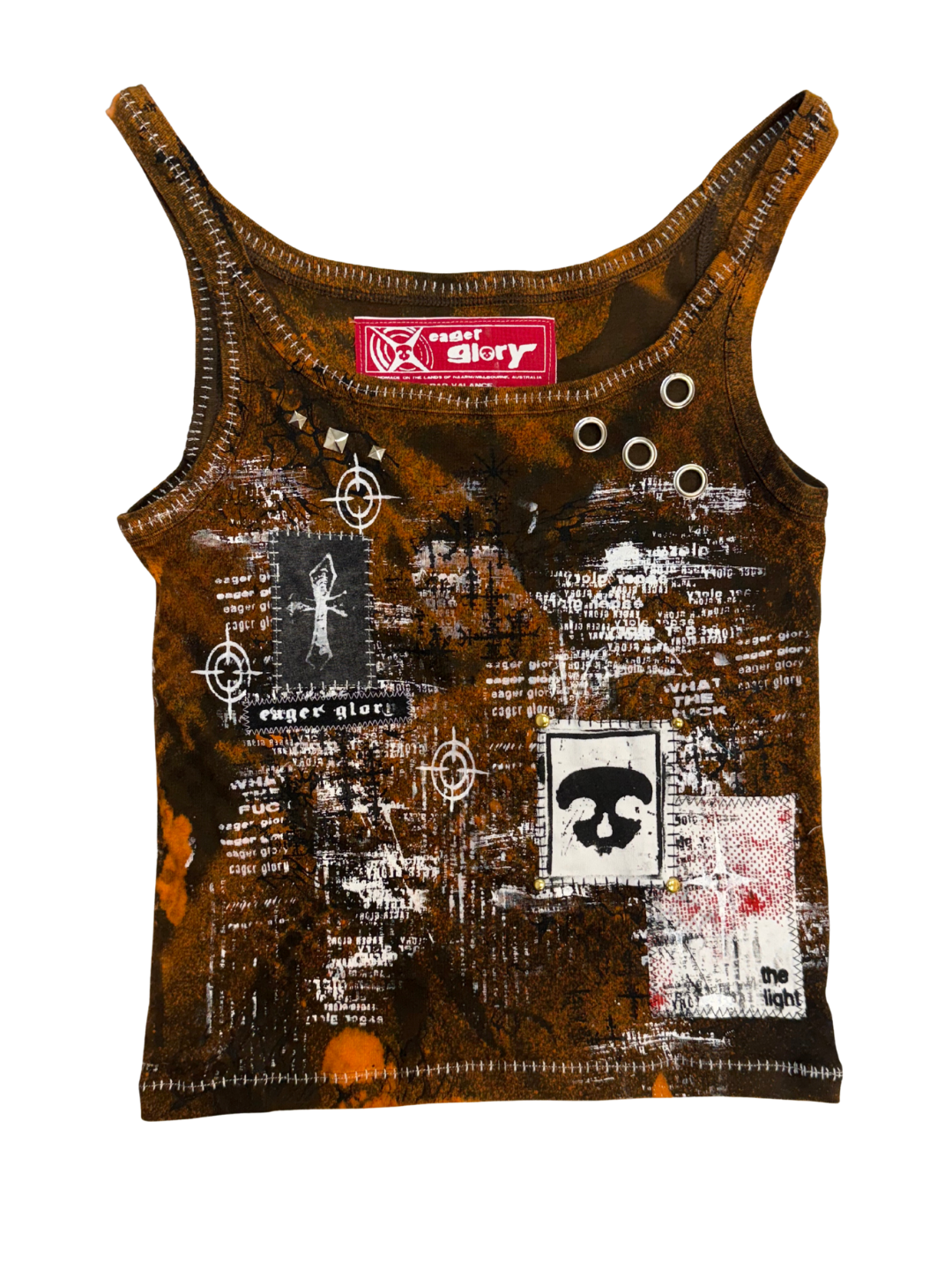 ✮ BRIMSTONE ✮ Sz M ✮ BLEACHED Black/Orange Singlet / Patched and Screen Printed - Cotton/Polyester ✮ Measurements: Chest - 36cm / Length - 36cm ✮