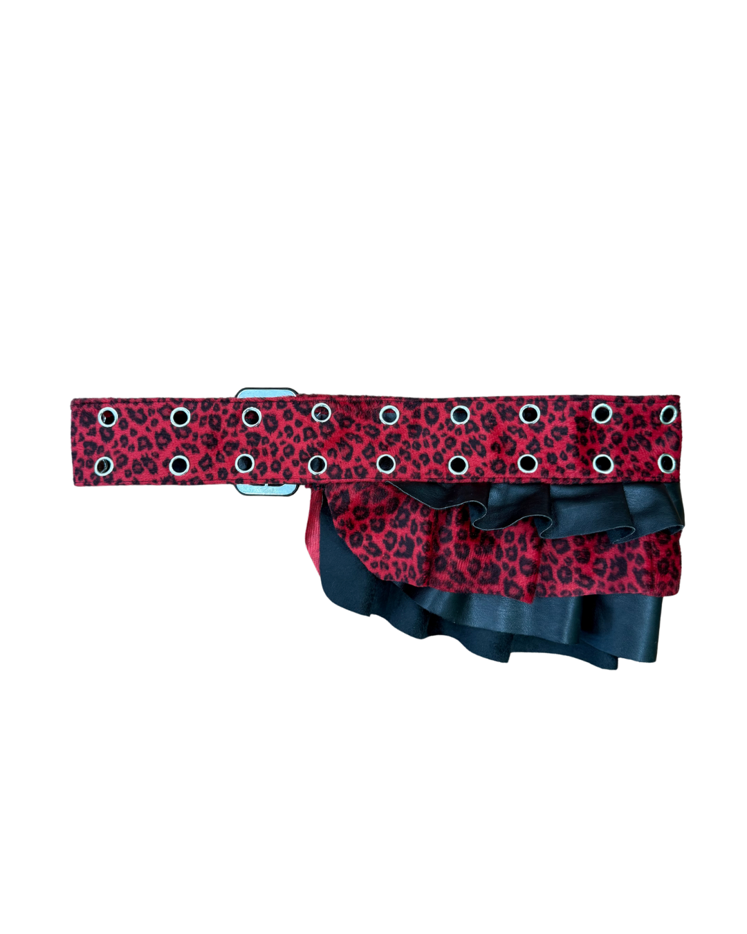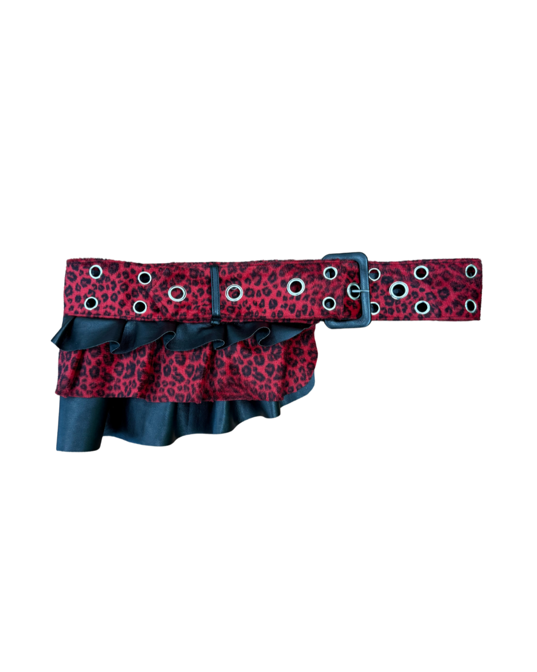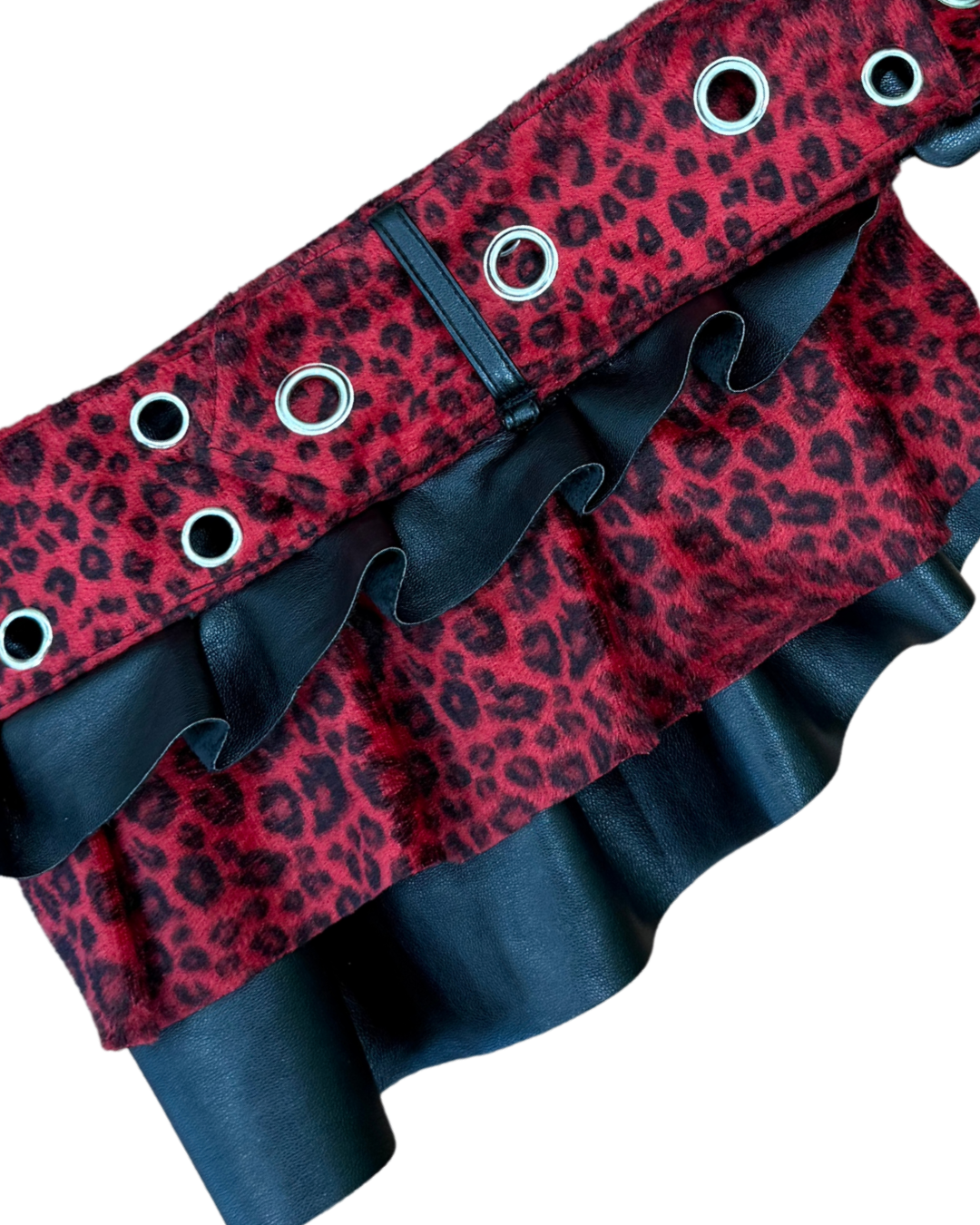 ✮ BUT IT'S BETTER IF YOU DO ✮ Sz L ✮ UPCYCLED Belt/Skirt made from hot pink leopard print pants and leather material - ✮ ADJUSTABLE!