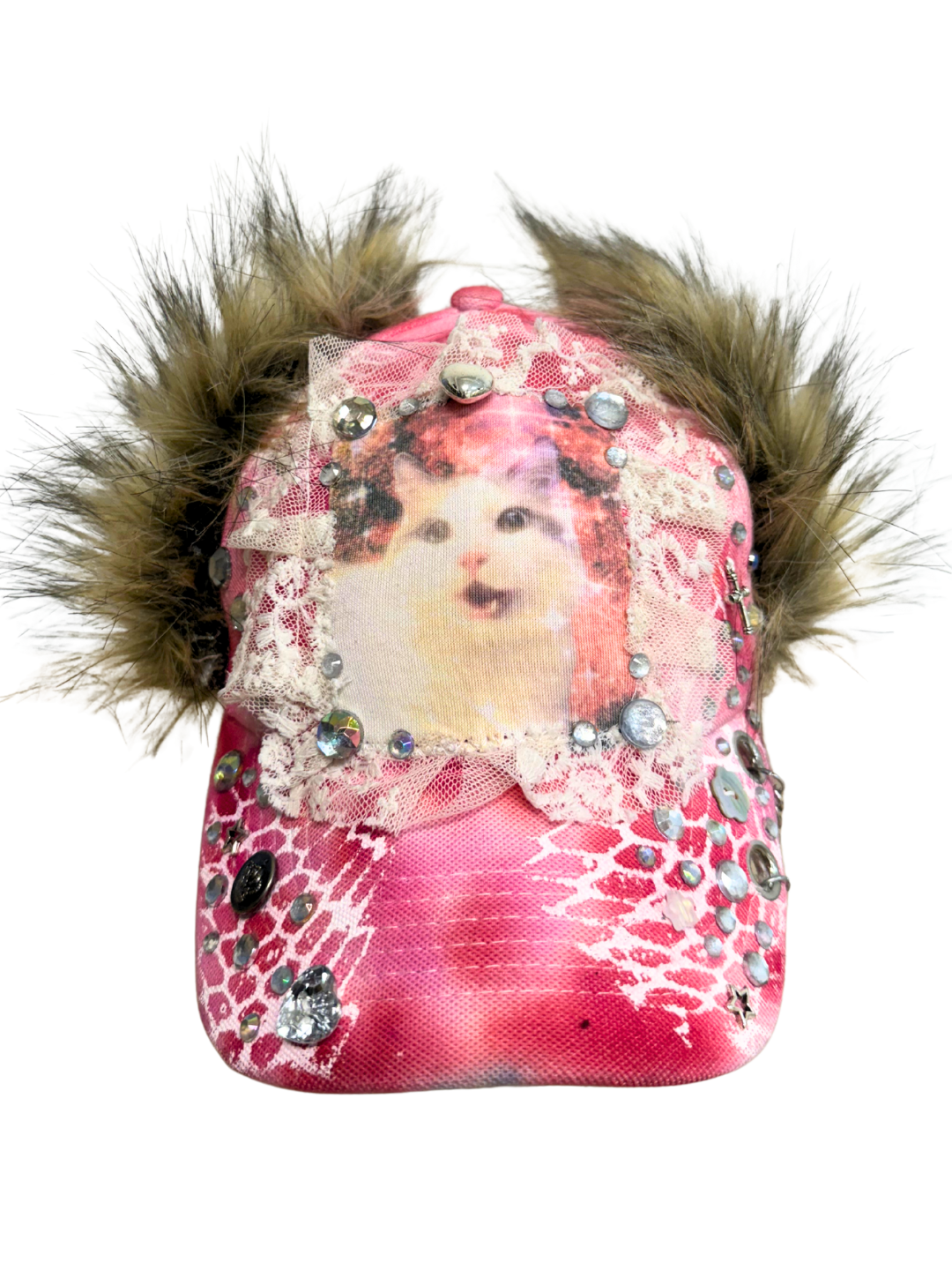 ✮ Pink Cat Cap - Sewn, Screenprinted, Studded, Jewled, Spiked ✮