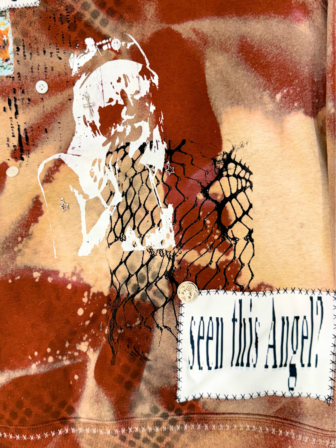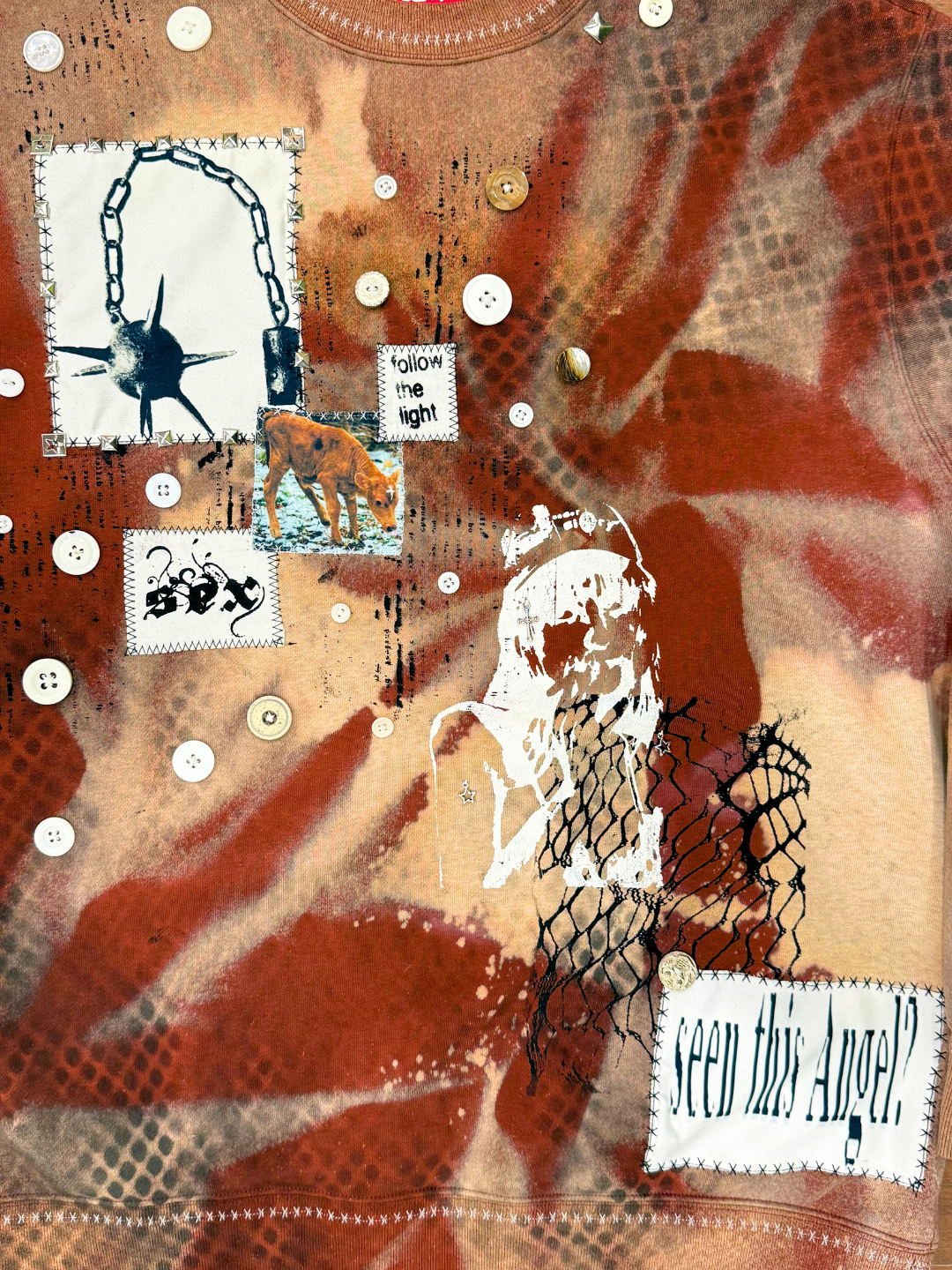 ✮ COWHIDE ✮ Sz L ✮ BLEACHED Brown Sweater / Spray Painted - Screen Printed - Patched - Sublimated - Cotton/Polyester ✮ Measurements: Chest - 49cm / Length - 68cm / Sleeve - 66cm ✮
