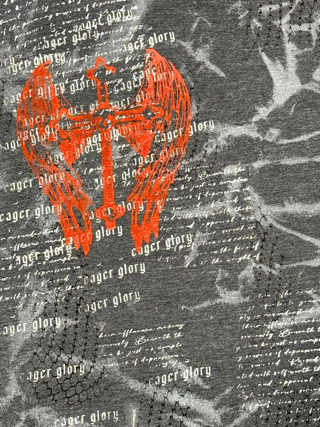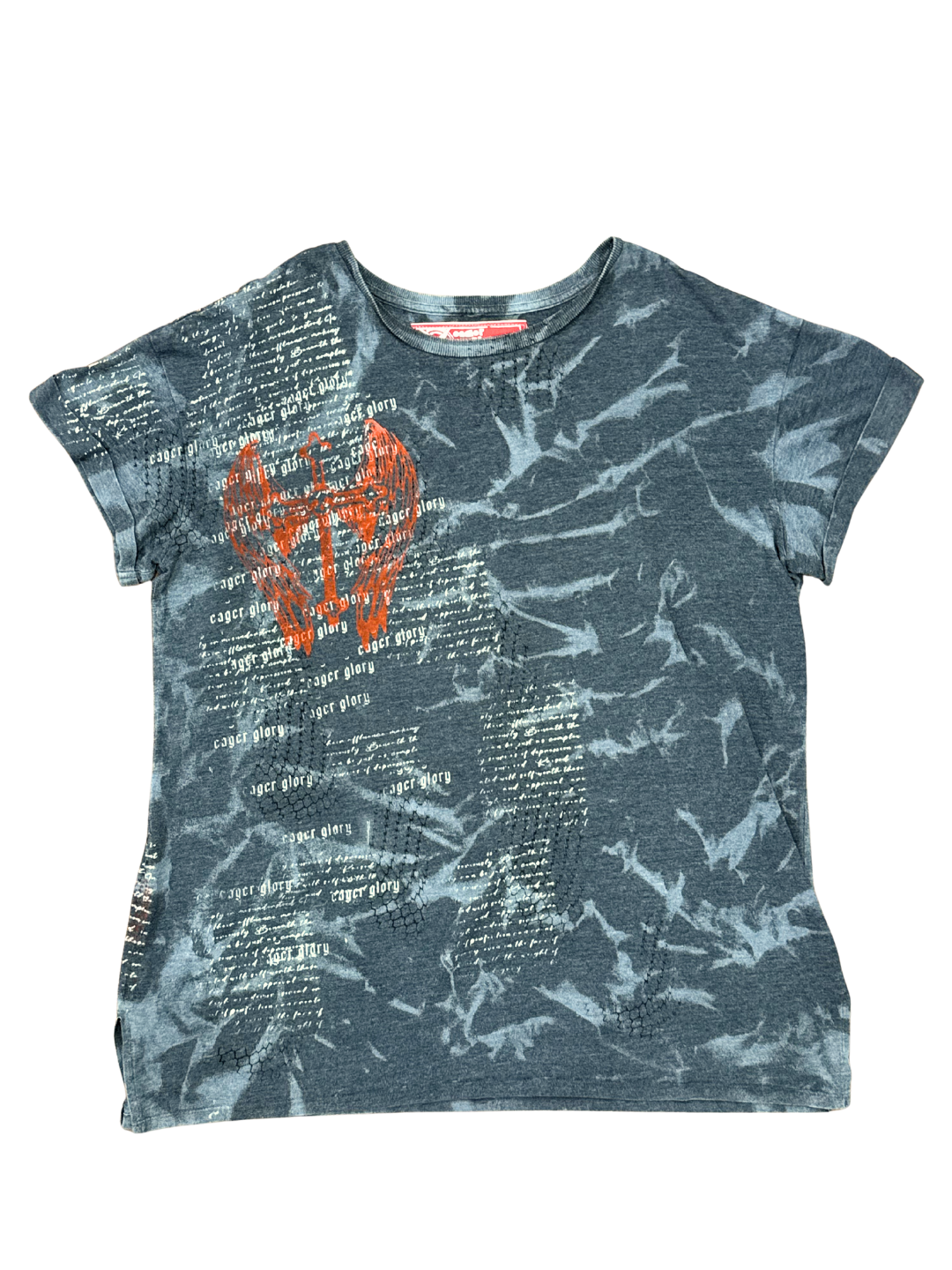 • 1. ✮ I YEARN ✮ Sz XL ✮ Screenprinted Grey T Shirt- Cotton/Polyester ✮ Measurements: Chest - 47cm / Length - 68cm / Sleeve - 27cm ✮