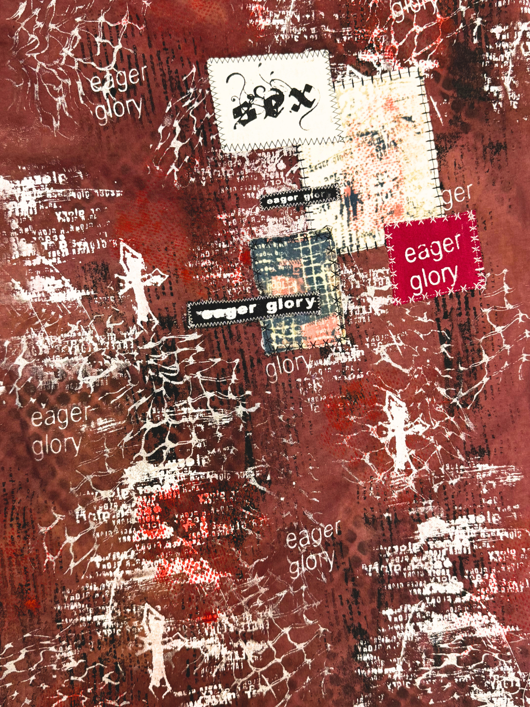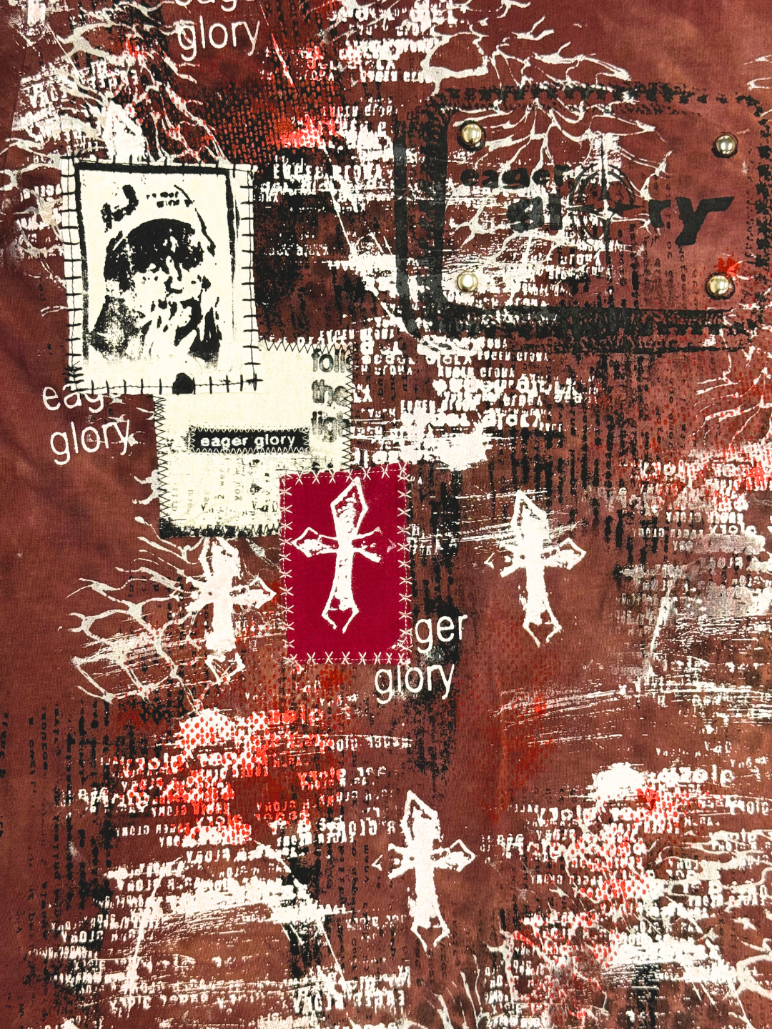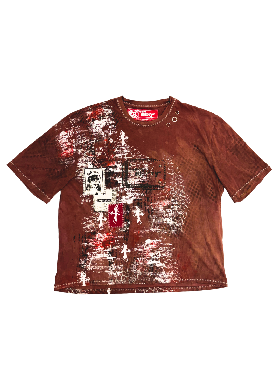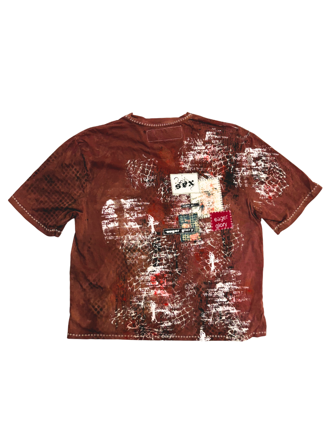 ✮ LONDON PIPES ✮ Sz L ✮ BLEACHED Brown T-shirt / Patched / Screen Printed / Sublimated- Cotton/Polyester ✮ Measurements: Chest - 48cm / Length - 59cm / Sleeve - 27cm ✮