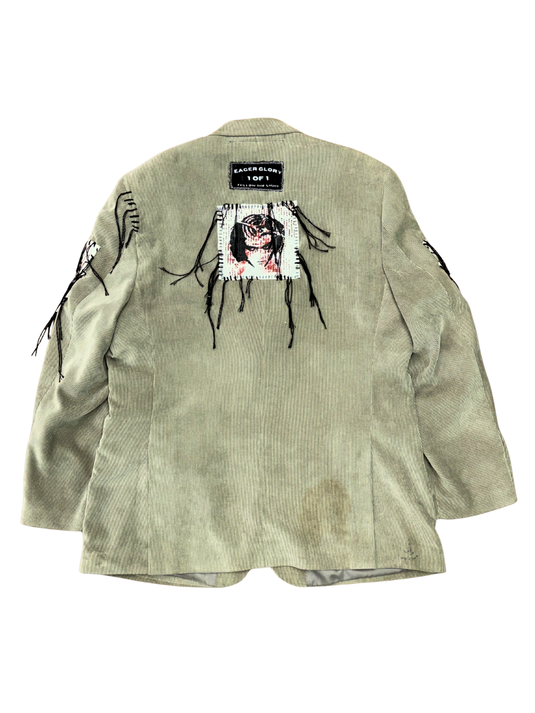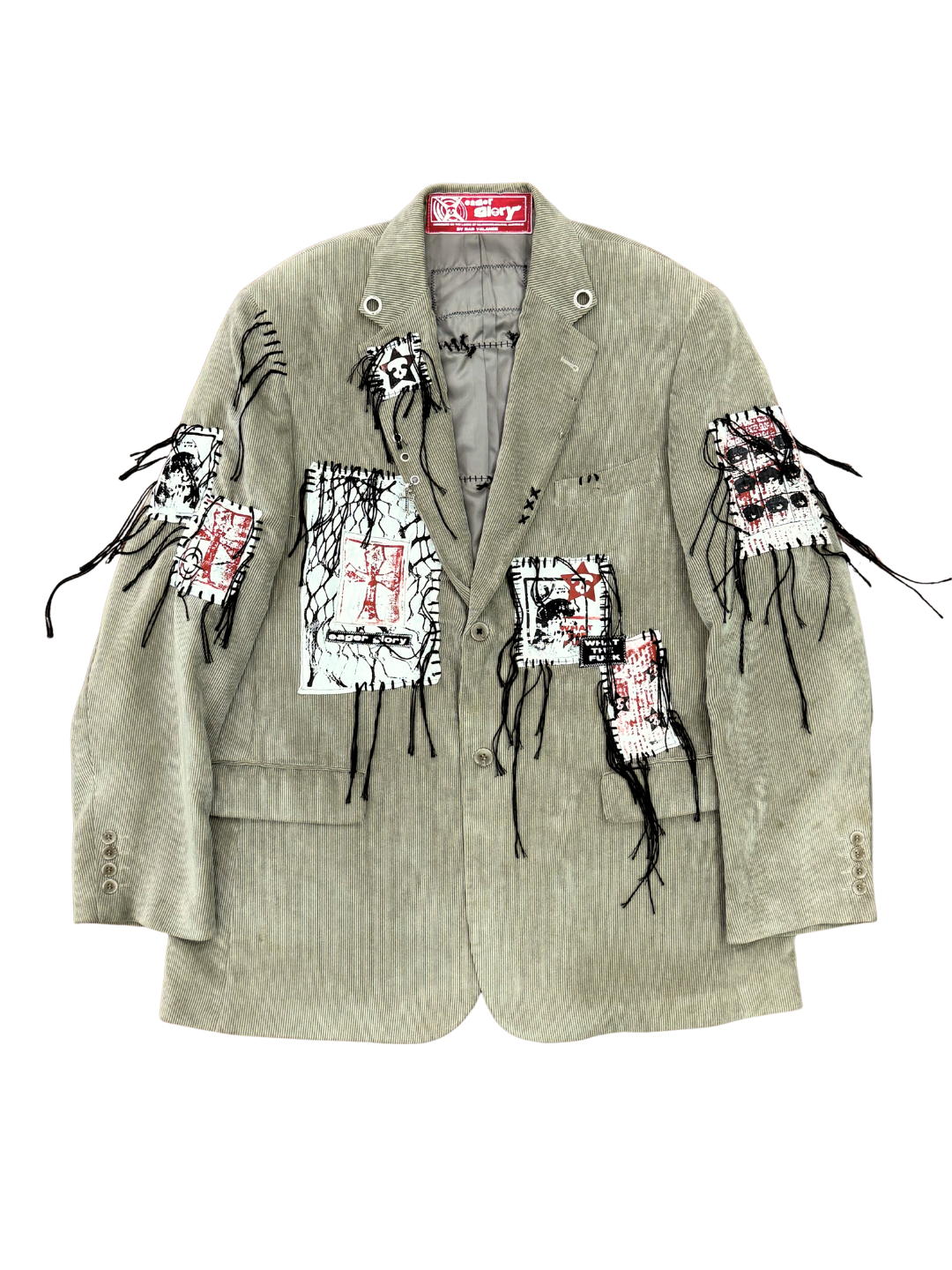 ✮ LOOSE THREADS ✮ Sz L ✮ Corduroy Beige Blazer / Screen Printed - Patched - - Corduroy /Lined ✮ Measurements: Chest - 50cm / Length - 84cm / Sleeve - 62cm ✮