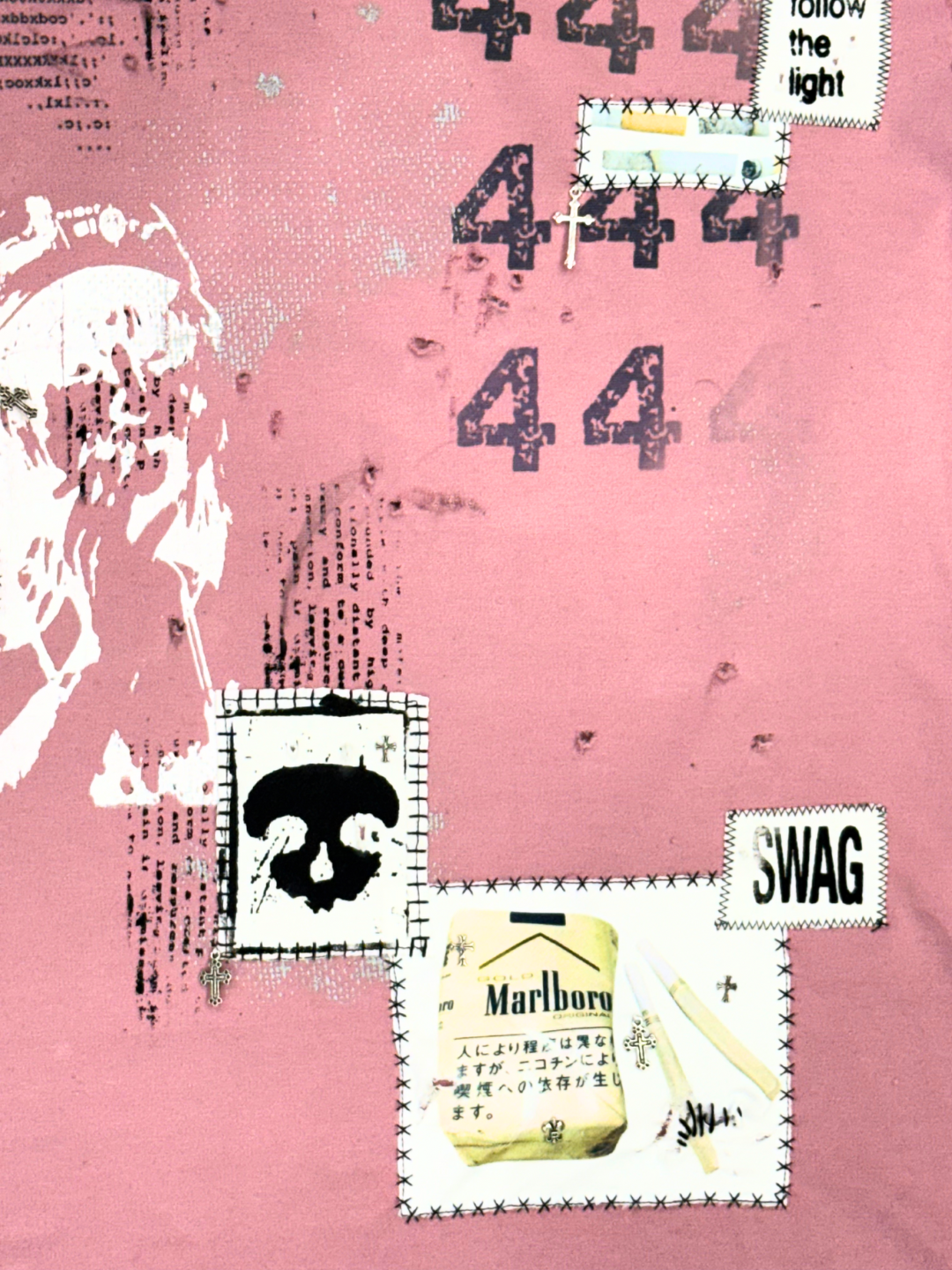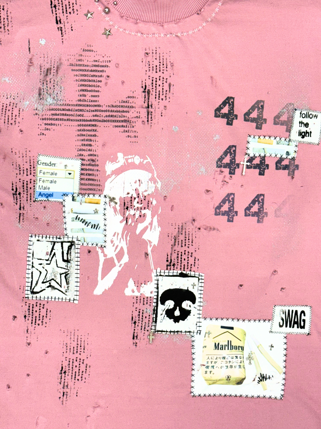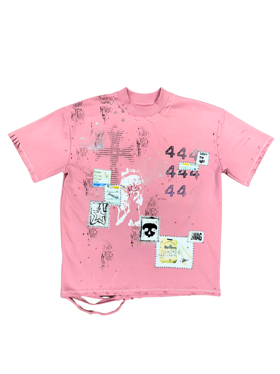 MALBORO GURL ✮ Sz L ✮ Pink T Shirt / Screen Printed - Patched - Sublimated - Cotton/Polyester ✮ Measurements: Chest - 52cm / Length - 70cm / Sleeve - 23cm ✮